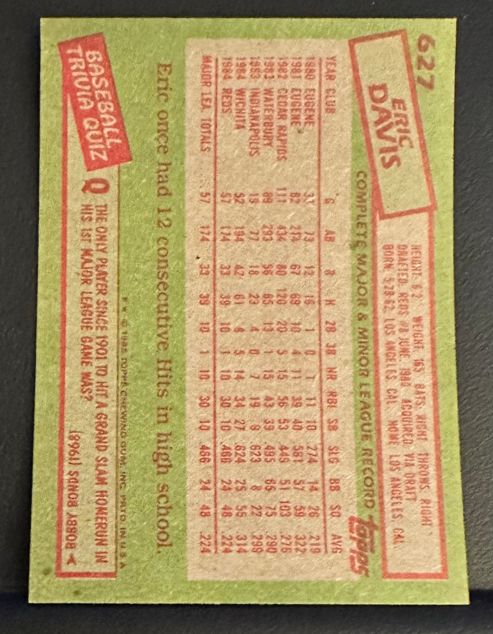 1985 Topps Set-Break #627 Eric Davis RC NM-MT OR BETTER